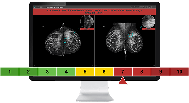 Le MammoScreen Score™ offre une assistance rapide et fiable pour les cas que vous considérez comme bénins et de ceux nécessitant une attention approfondie.